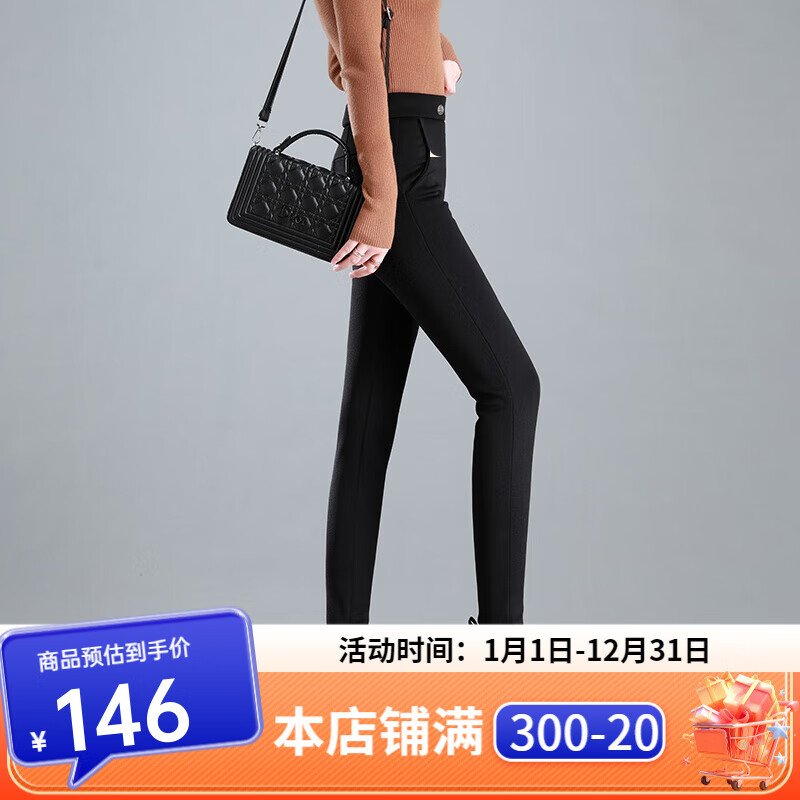 逸阳断码加绒打底裤女外穿秋冬棉裤高腰小脚显瘦铅笔魔术裤 黑色【单裤】 S