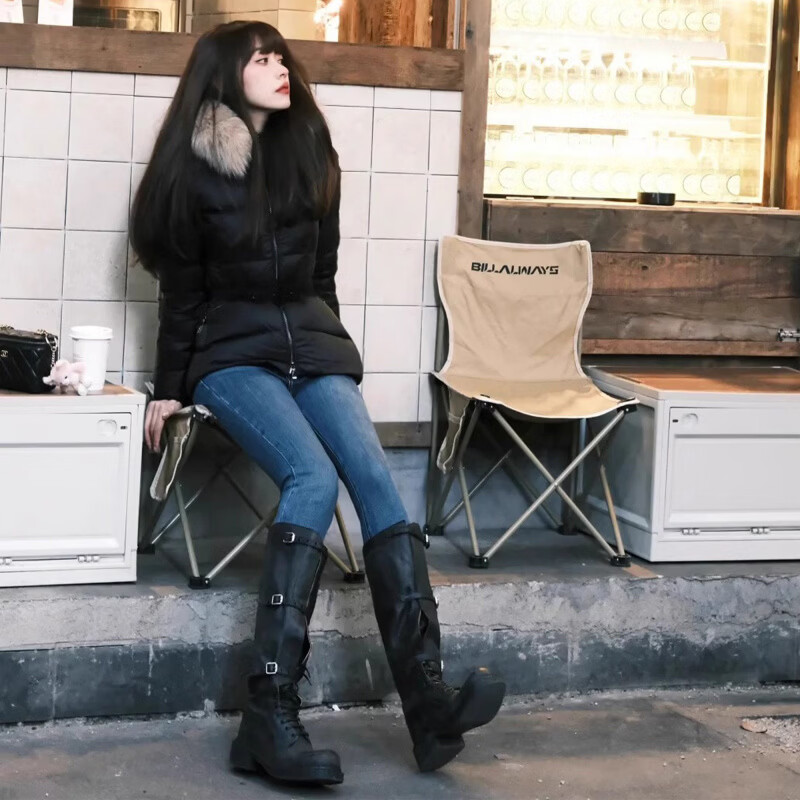 贤语米白色加绒牛仔裤女高腰显瘦小脚2024年秋冬新款紧身弹力铅笔靴裤 1048杏色(单裤) S