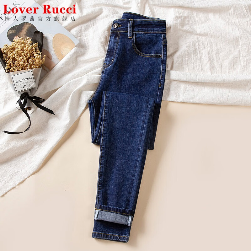 LOVER RUCCI深蓝色牛仔裤女修身小脚2025春秋新款高腰显瘦弹力紧身九分铅笔裤 深蓝色长裤【单裤】 25