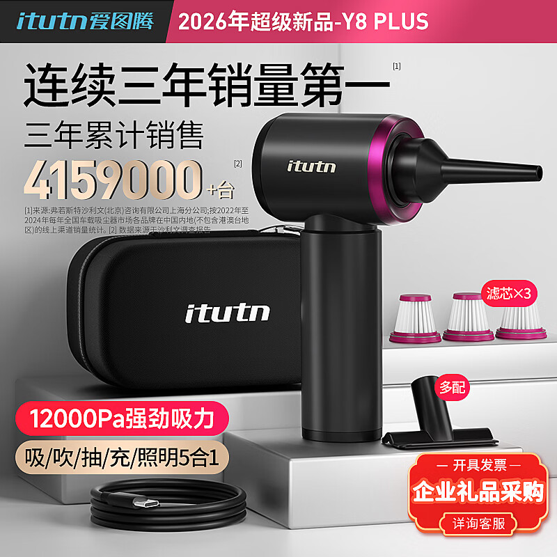爱图腾itutn车载吸尘器大吸力吹吸两用无线大功率手持吸尘器汽车用小型随手吸清灰除尘公司年会礼品M8Pro