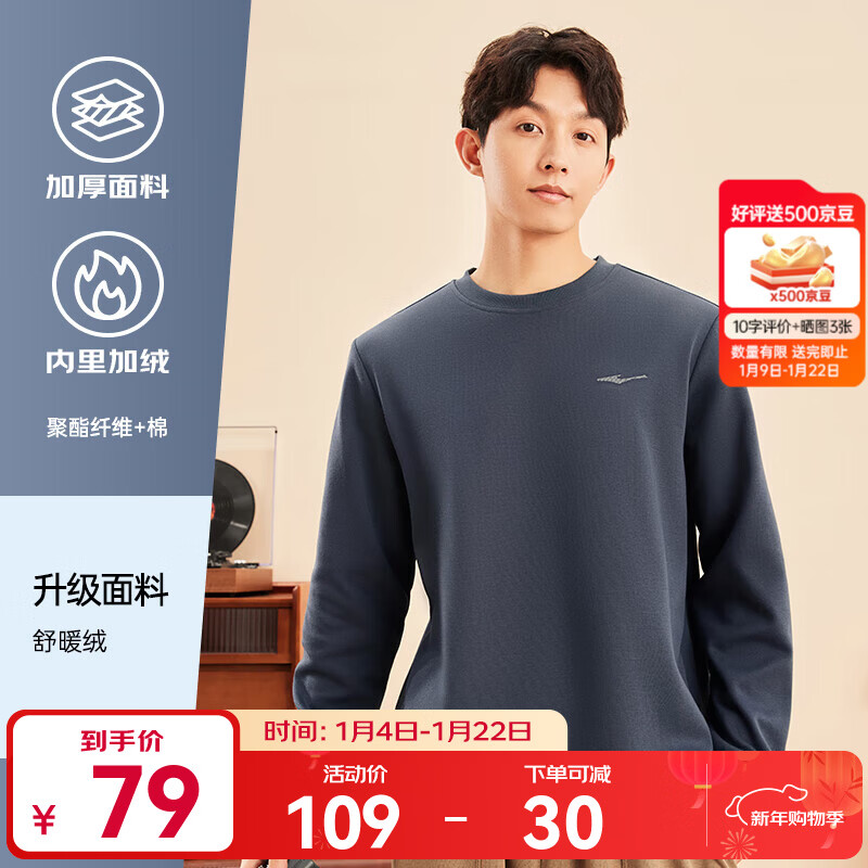 鸿星尔克卫衣男秋冬季新款加绒保暖休闲跑步运动服上衣套头衫长袖卫衣男装 【1067】陌境蓝-加绒款 2XL
