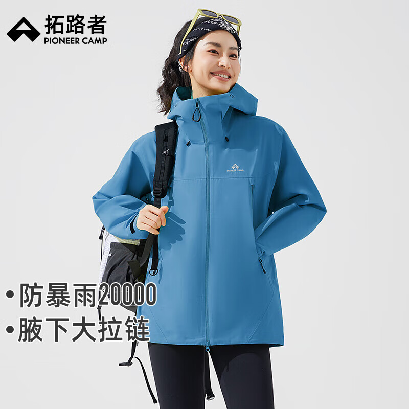拓路者小鹰冲锋衣女东丽全天候硬壳户外单冲女款防风防水登山服夹克外套 松石蓝 L