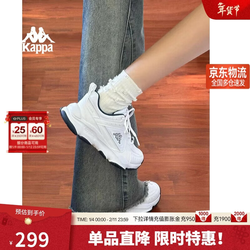 卡帕(Kappa)女鞋冬季运动老爹鞋女款2026新款增高休闲小白鞋子女 01白影蓝 36