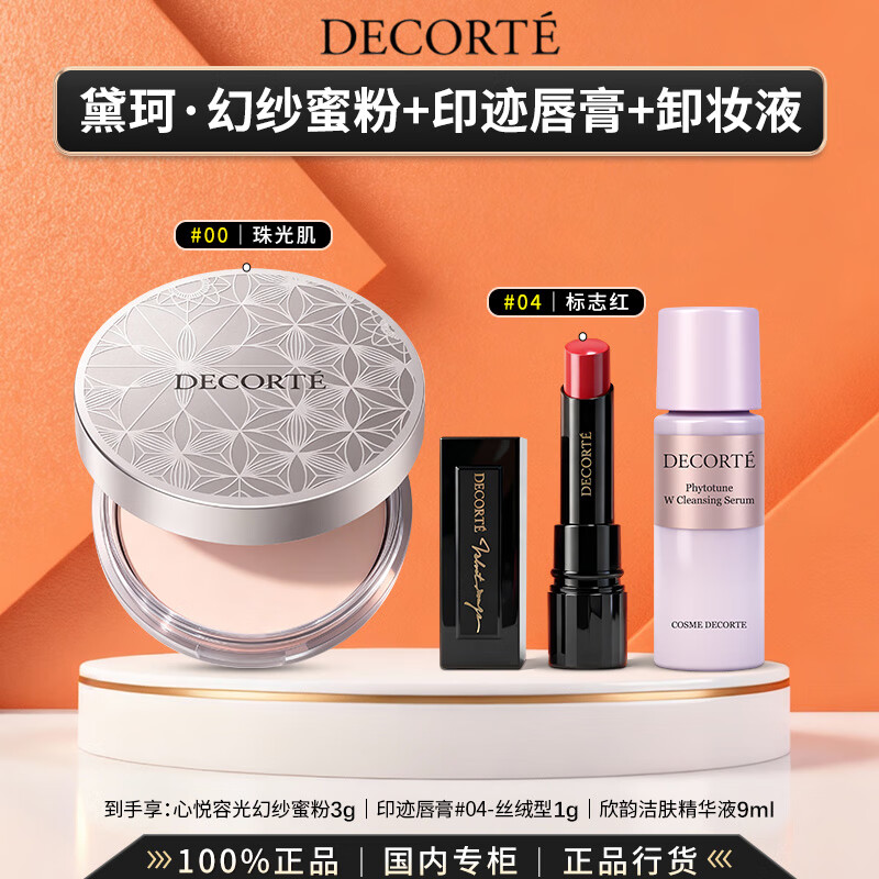 黛珂(DECORTE)心悦容光幻纱蜜粉调光师蜜粉#101/00/07四色定妆散粉持妆礼盒礼物 【MINI唇粉】蜜粉00#珠光肌+印迹唇膏#04
