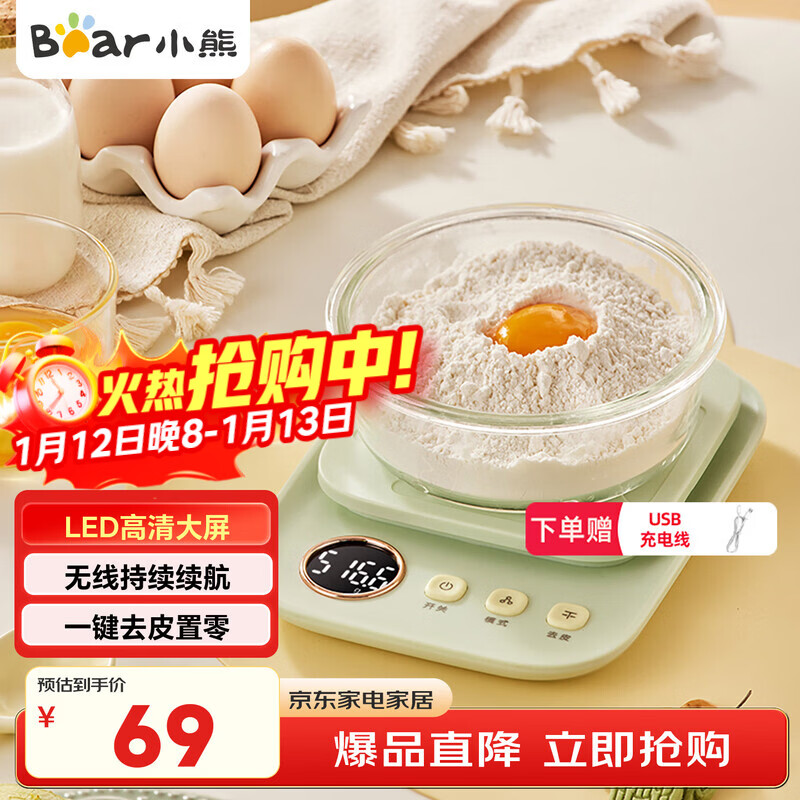 小熊(Bear)厨房秤 高精度0.1g充电款 家用电子秤 厨房克秤 迷你食物称