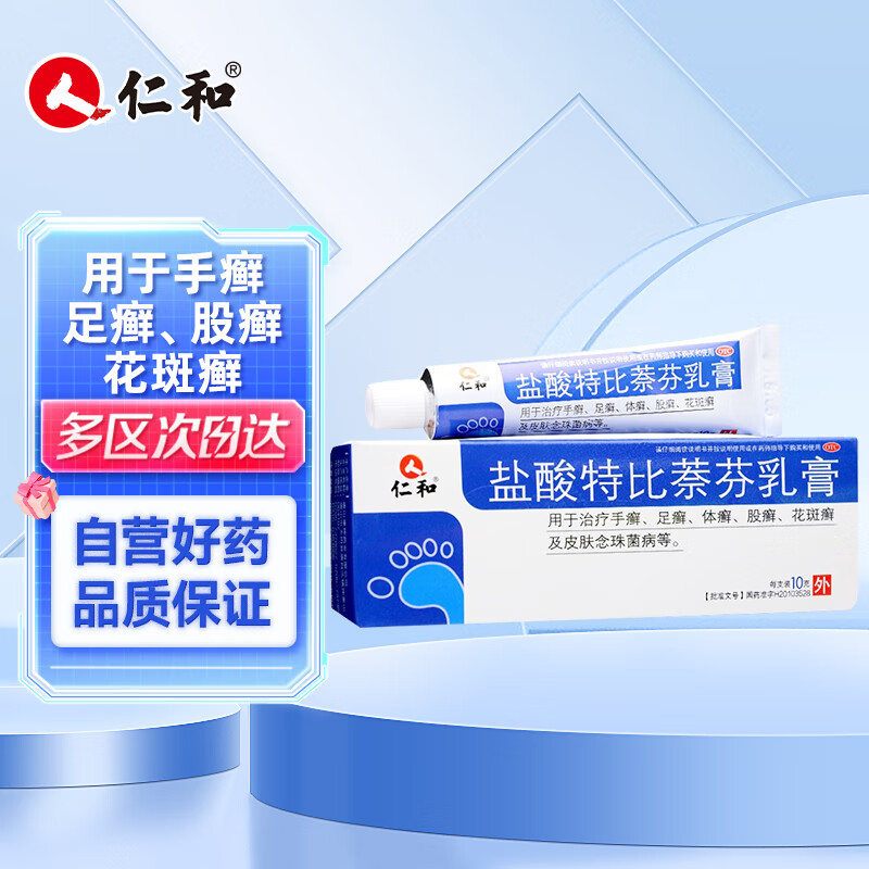 仁和盐酸特比萘芬乳膏1%*10g*1支 脚臭脚癣股癣真菌感染止痒杀菌去脚气软药膏皮肤用药