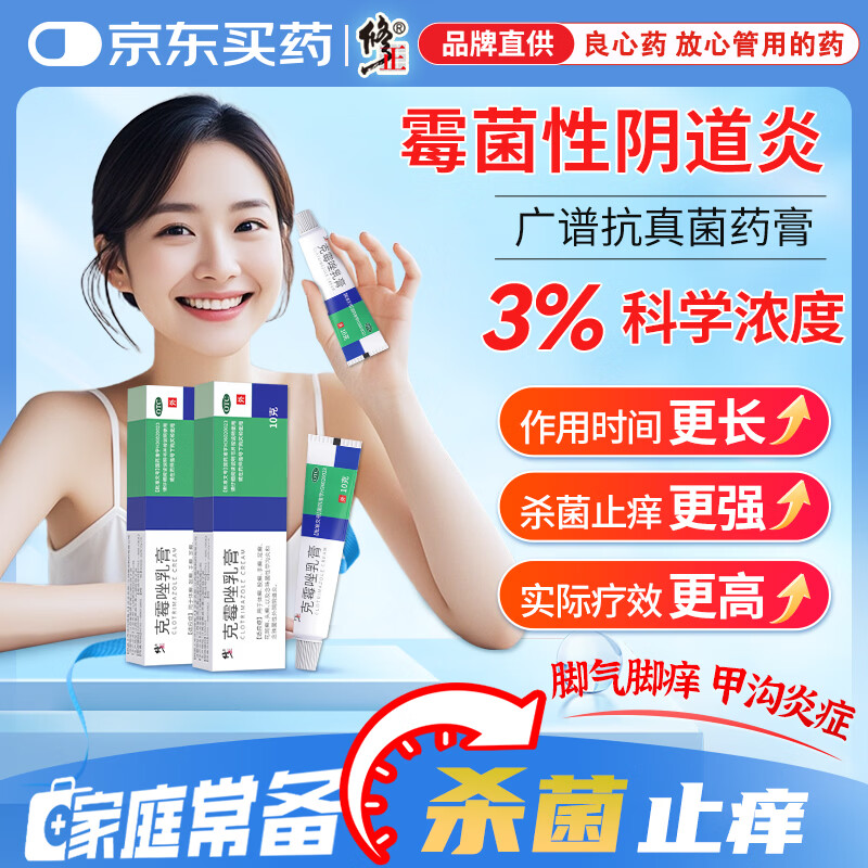 修正 克霉唑乳膏3%*10g妇科外阴瘙痒私处止痒杀菌龟头炎阴道炎真菌感染甲沟炎脚气克霉唑软膏