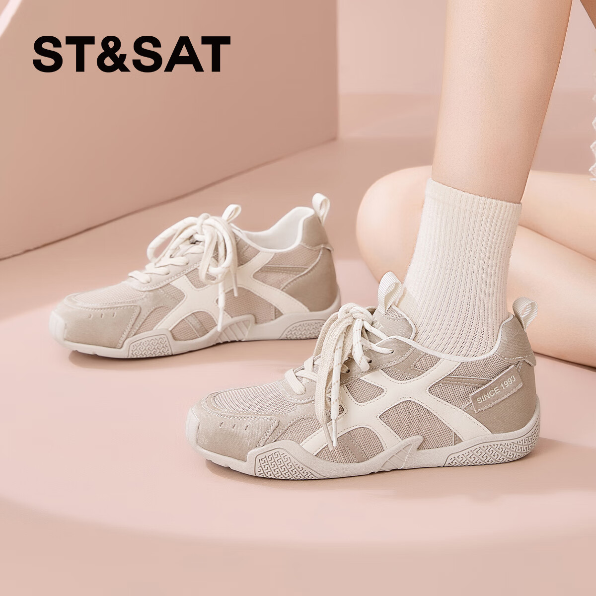 星期六复古运动鞋女2025年新款秋季时尚阿甘鞋小个子内增高德训鞋 杏色 35