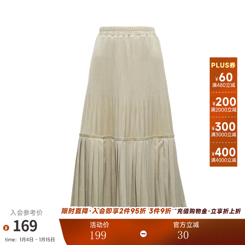 ROEYSHOUSE罗衣通勤OL秋季新款气质高腰百褶半身裙女装杏色短裙11288 杏色 (半身裙) M