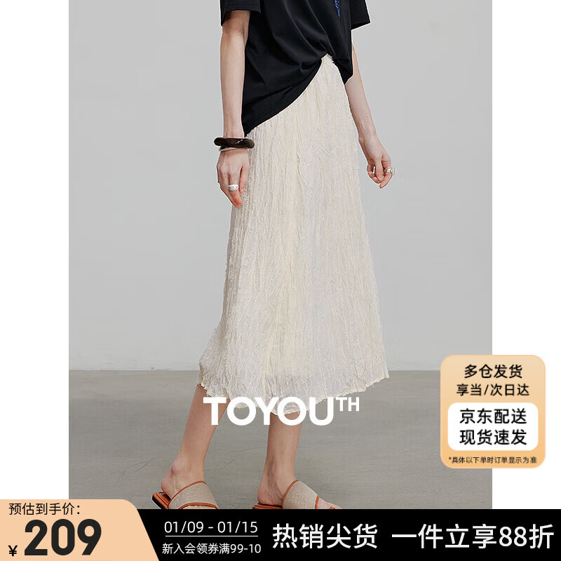 EGGKA法式荷叶边米杏色半身裙高腰a字内里加绒中裙E25B30288YM 米杏 L