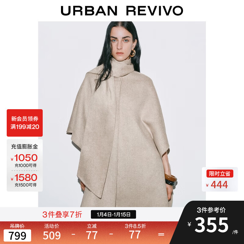 UR2025冬季新款女装气质流光风斗篷式大衣呢料外套UWG150063 裸杏色 M