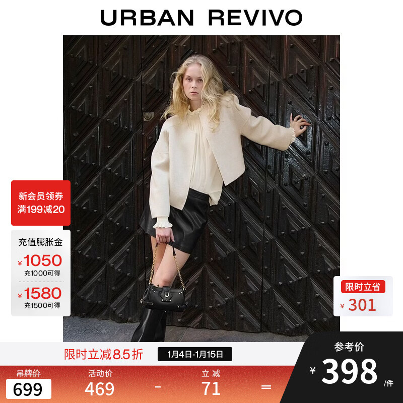 UR2025秋季新款女装慵懒休闲简约毛感宽松呢料外套UWG150118 裸杏色 S