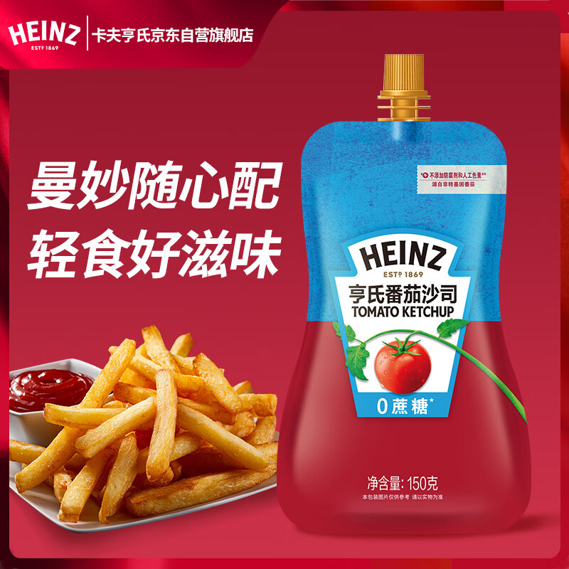 亨氏(Heinz) 番茄酱 0蔗糖0脂肪番茄沙司袋150g意大利面薯条披萨蘸酱