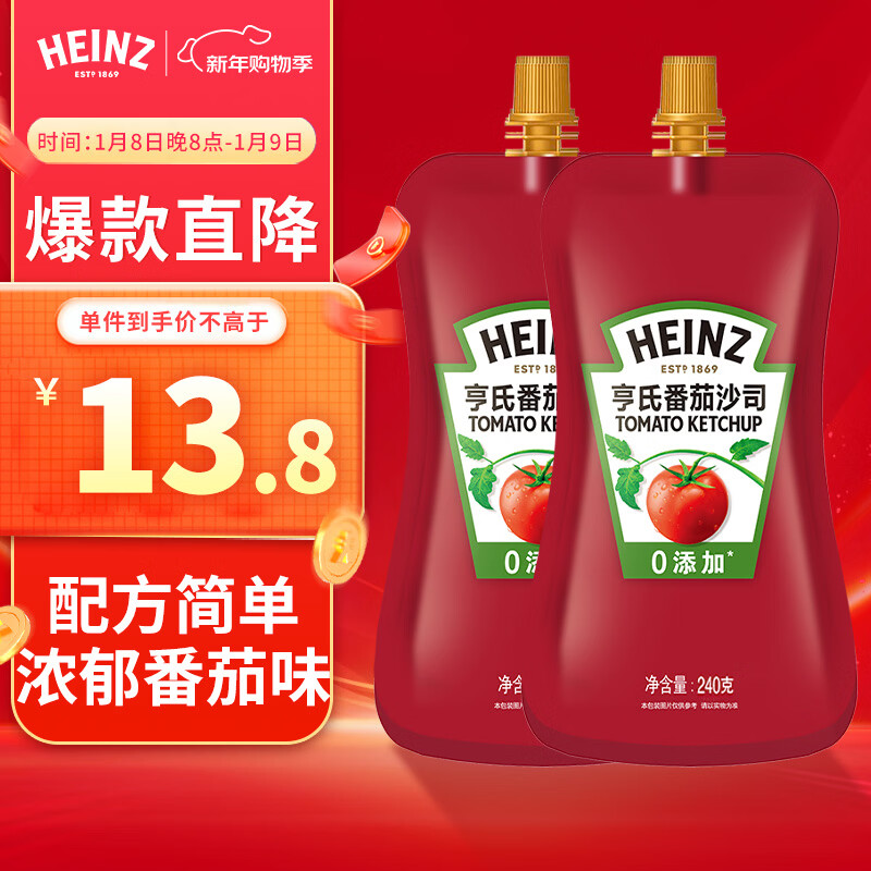 亨氏(Heinz)番茄酱 袋装番茄沙司240g*2袋 意大利面薯条酱