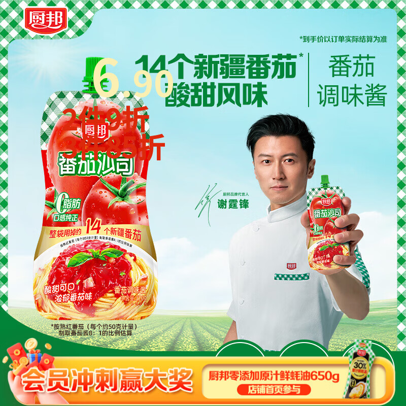 厨邦番茄沙司320g 0脂番茄酱 酸甜酱意面披萨手抓饼薯条沙拉酱