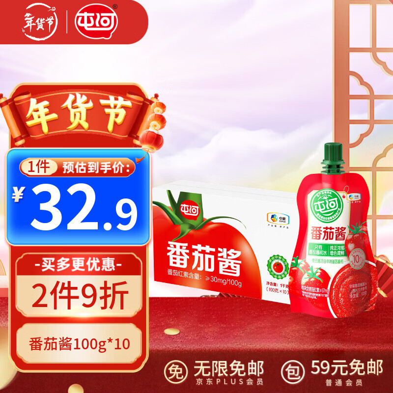 屯河中粮新疆内蒙番茄酱西红柿酱炒菜意面酱调味番茄膏 番茄酱100g*2袋