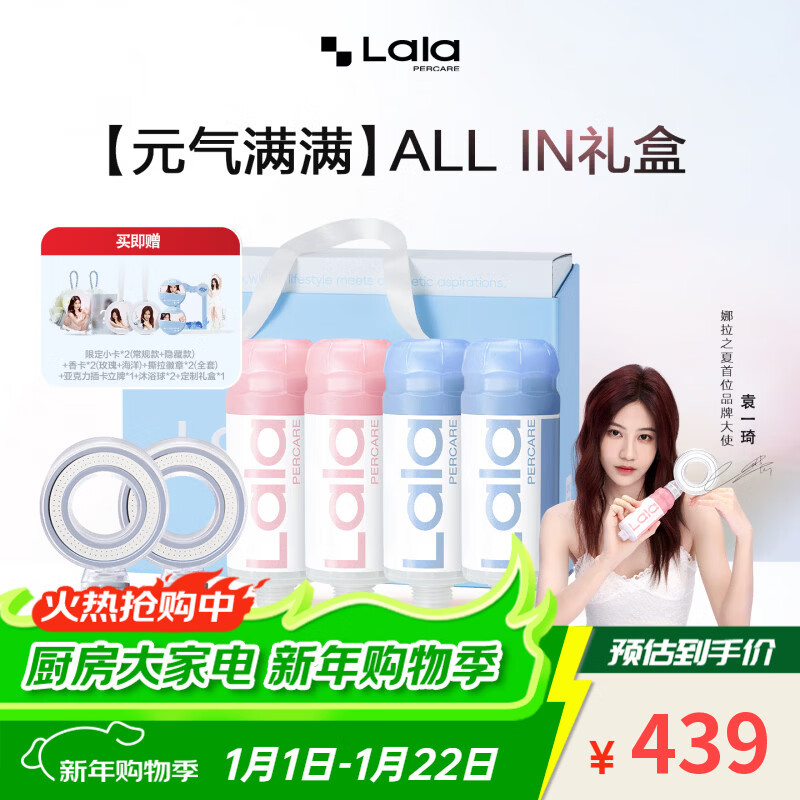 LALAPERCARE袁一琦专属「元气满满」ALL IN礼盒净水养肤香氛过滤除氯花洒套组 「元气满满」玫瑰+海洋+牛奶+森林+太空环花洒*2