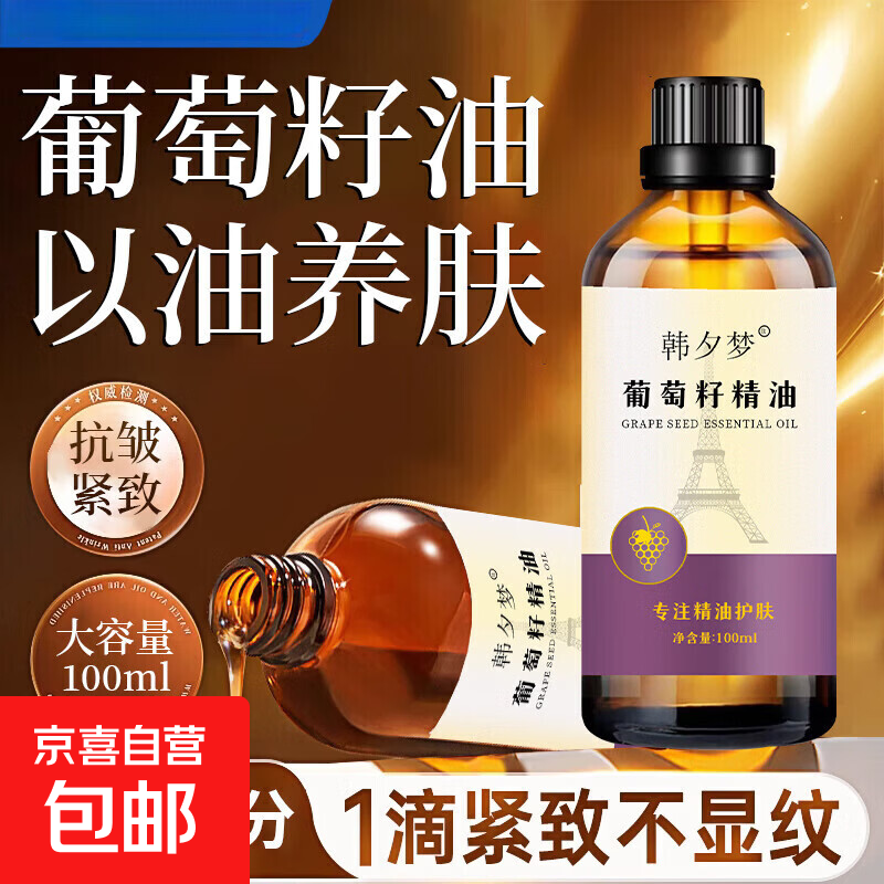 葡萄籽精油面部保湿抗皱紧致脸部按摩护肤植物萃取精华油以油养肤 葡萄籽精油100ml【抗皱紧致】