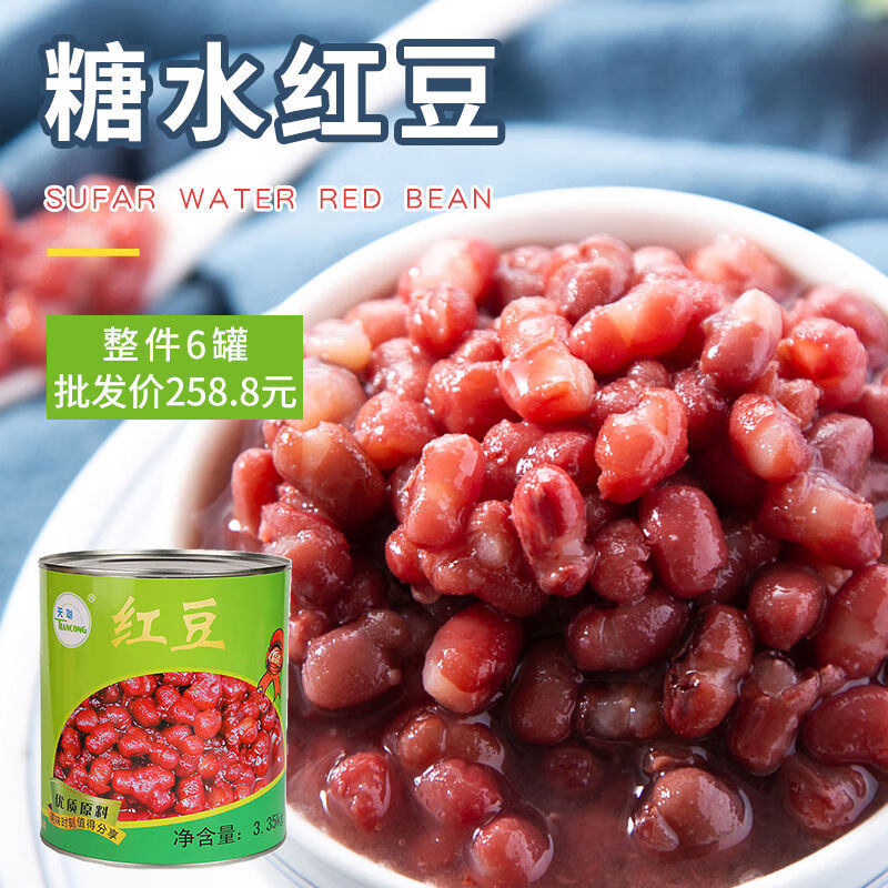 天聪红豆罐头335kg即食糖水熟红豆颗粒蜜豆珍珠商用红豆奶茶六罐 红豆罐头3点35kg*6罐箱
