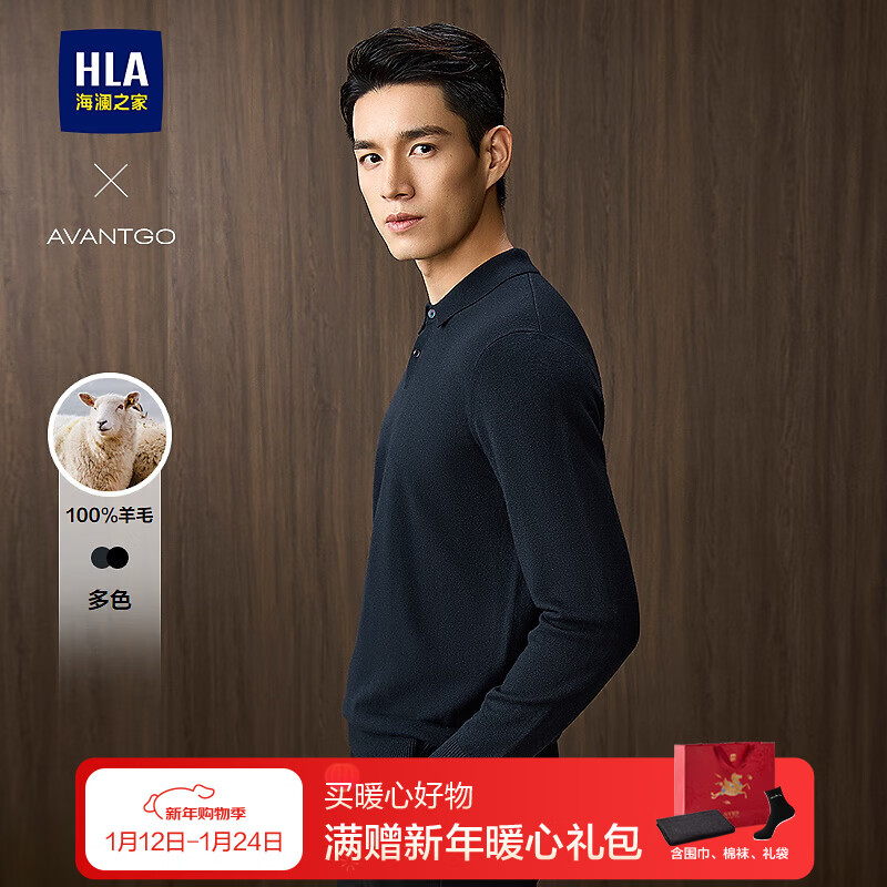 海澜之家羊毛衫男轻商务经典系列翻领毛衣冬季男 藏青97 L 175/92A 推荐137~150斤