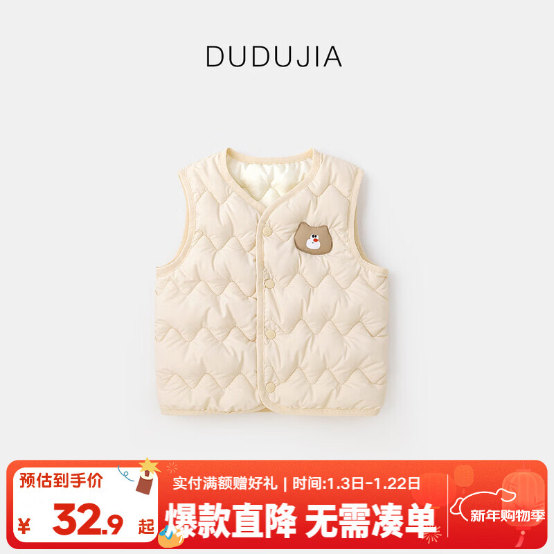 嘟嘟家儿童背心加厚秋冬过年红色男童马甲冬季保暖童装女童棉服马夹上衣 米白色 90