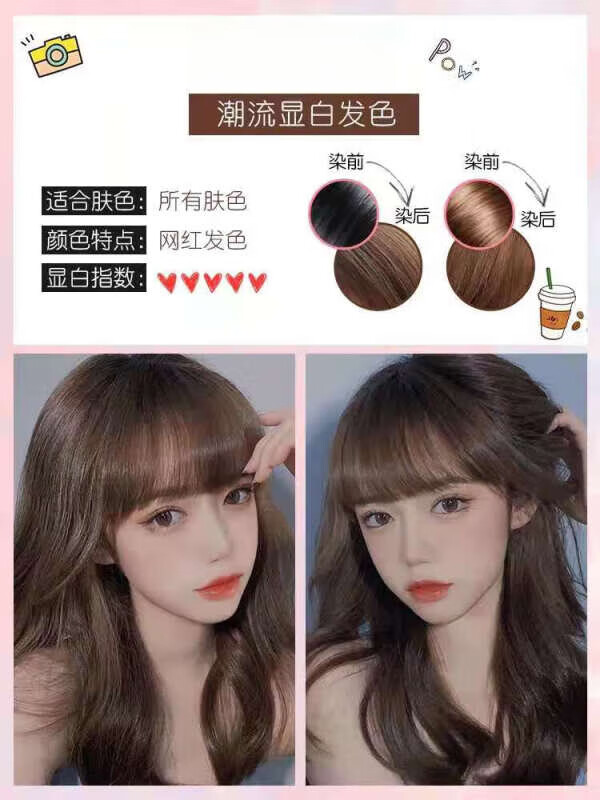 染发剂自己在家染染发膏蓝黑紫色闷青植物2021流行色奶茶灰棕 粉棕色+工具【】