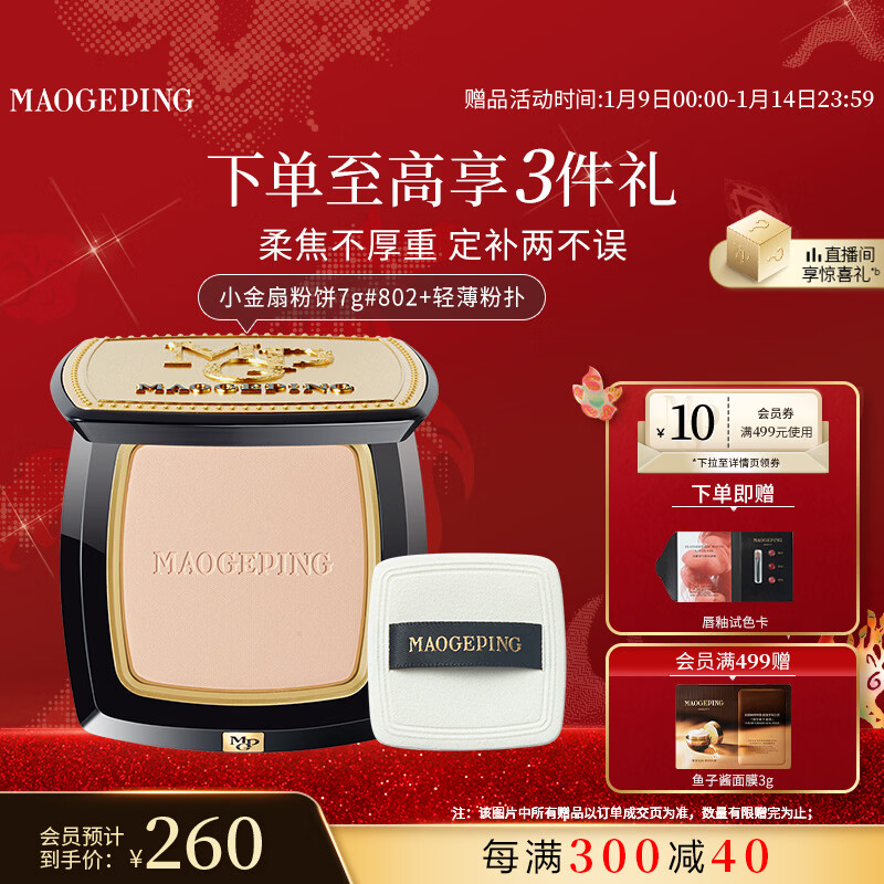 毛戈平光感柔纱凝颜小金扇粉饼802自然色7g粉饼定妆补妆修容新年礼物女