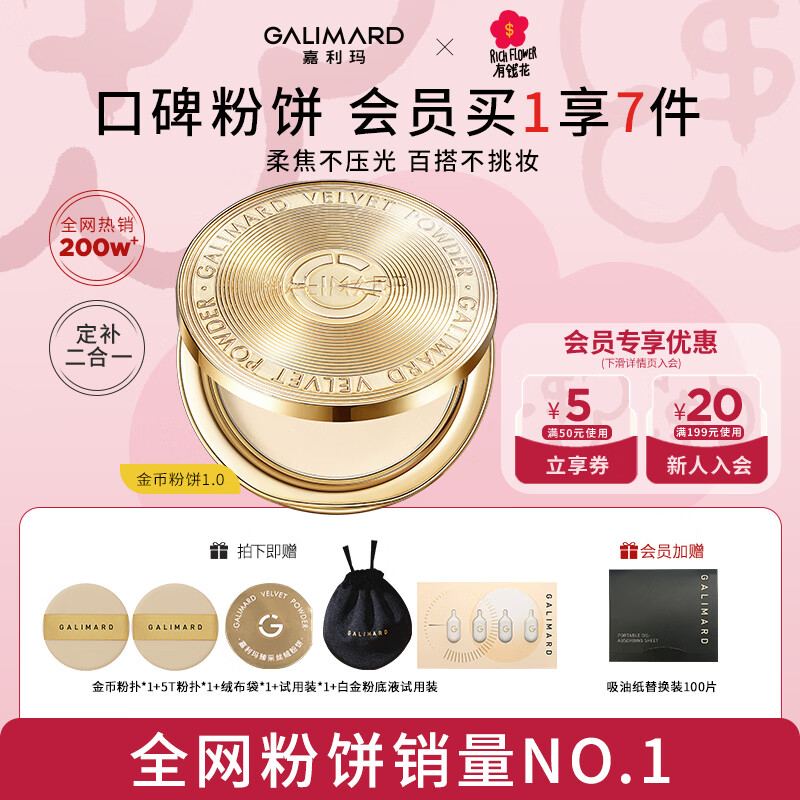 嘉利玛金币粉饼控油补妆定妆持妆遮瑕柔焦哑光妆效蜜粉饼9g N01象牙白