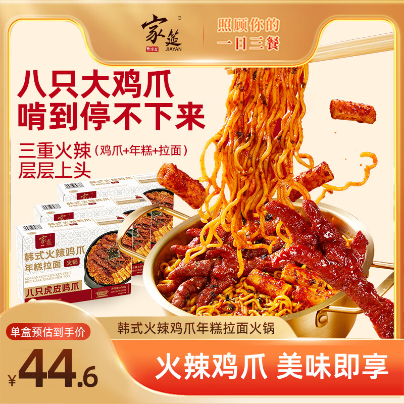 家筵韩式高端火鸡面辣鸡爪拉面年糕火锅650g*3盒火辣虎皮凤爪夜宵宿舍