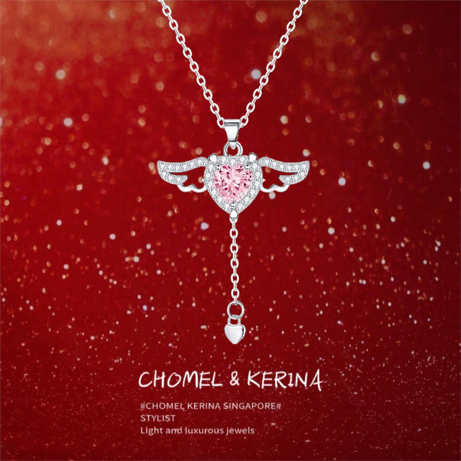老凤祥纯银丘比特之心项链天使锁骨链会动翅膀纪念日生日礼物送女友老婆 今/次日达*925银*丘比特之心项链【限时清仓】