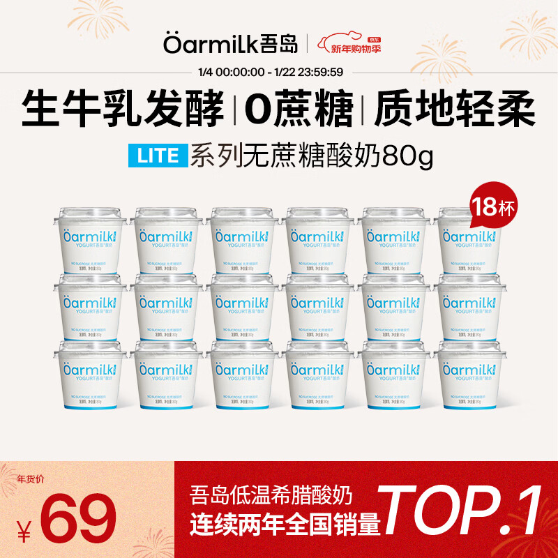 OarmiLk吾岛酸奶0蔗糖低糖多口味6种有益菌生牛乳发酵低温酸奶早餐代餐 无蔗糖酸奶80g(lite系列) 18杯