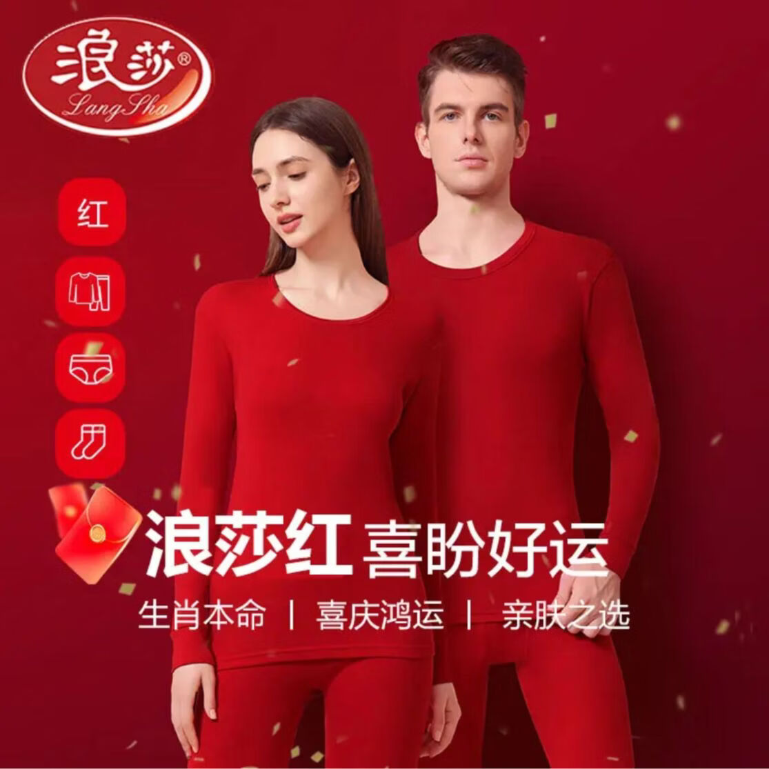 浪莎(LangSha)2026马年本命年保暖内衣女套装男士大红色情侣结婚秋衣秋裤礼盒装 秋衣秋裤套装+2双袜子 上衣+裤子+2双本命年红袜子 3XL 男(185)