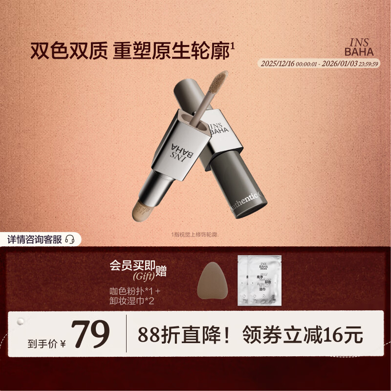 原色波塔(INSBAHA)原色建构双效修容棒遮瑕提亮哑光阴影鼻影改善面部凹陷七夕礼物 01原生麦【适配亚洲黄调皮】
