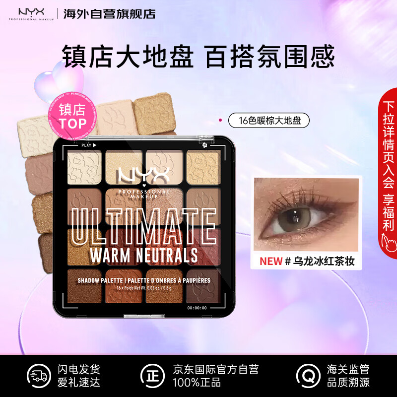 NYX16色眼影盘新版大地色12.8g高光修容哑光珠光送女友礼物26.8到期