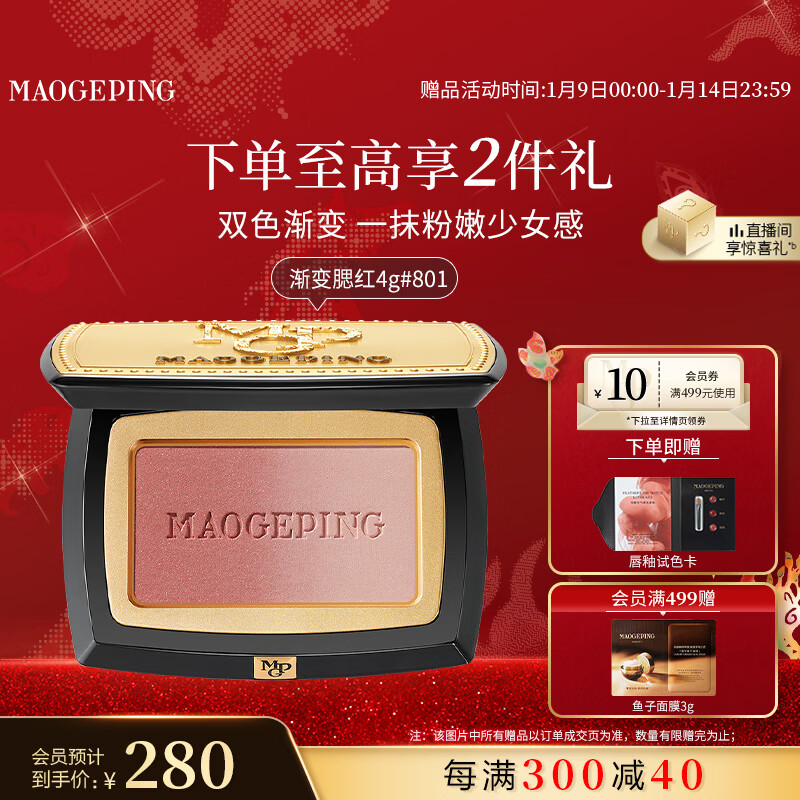 毛戈平云纱悦色渐变腮红801玉兰簌4g胭脂修容高光定妆新年礼物送女友