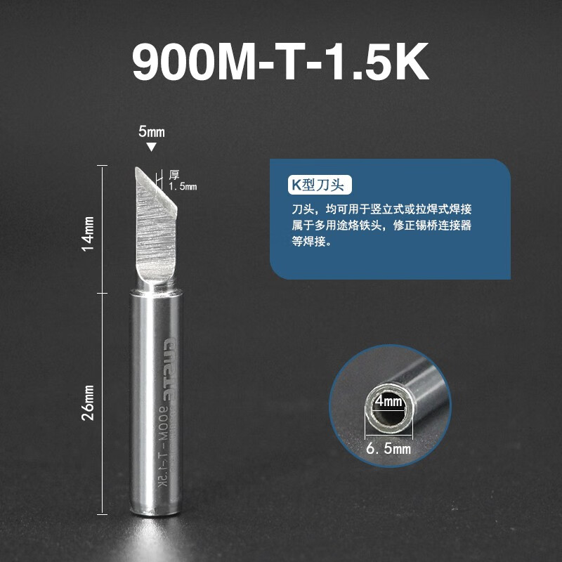 GUSTE黑金刚936焊台烙铁头900M-K刀口内热式60W电烙铁恒温洛铁头马蹄头 黑金刚 900M-K刀头