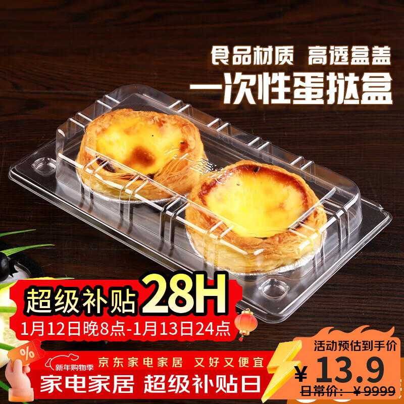 迪普尔 蛋挞盒子包装盒2粒烘焙打包盒家用装葡挞透明一次性商用盒子