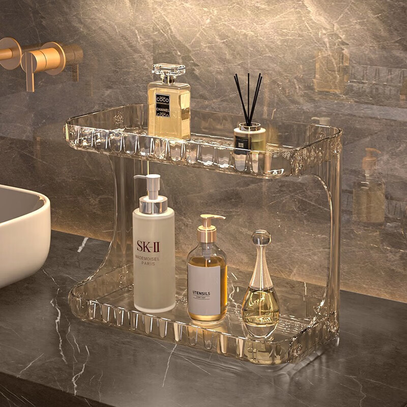 晟旎尚品桌面收纳盒化妆品口红面膜箱化妆刷筒桶卫生间梳妆台护肤品置物架 琥珀棕【双层置物架】