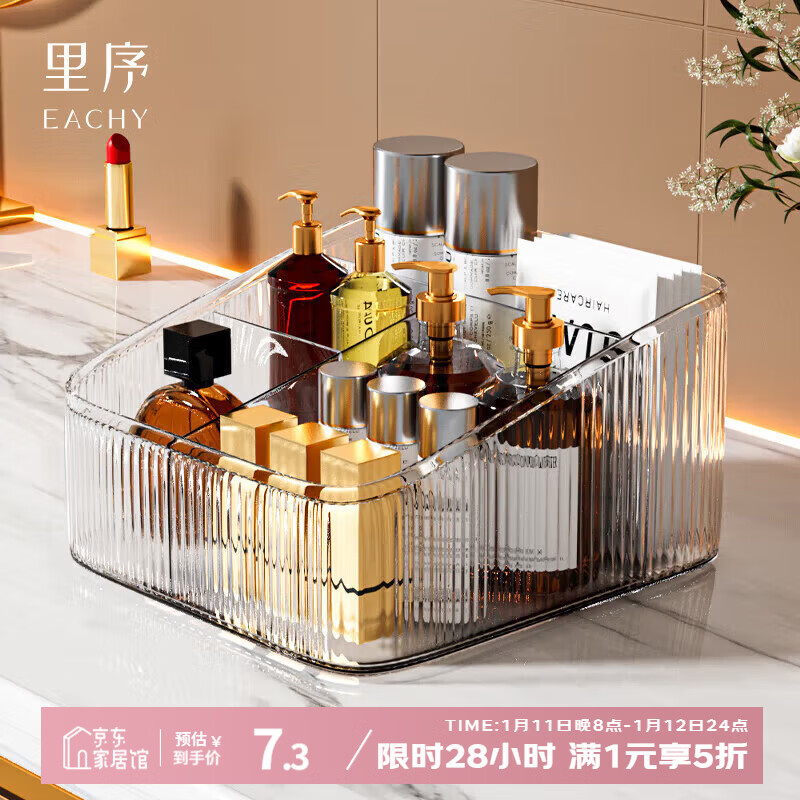 EACHY镜柜收纳盒浴室柜分格整理盒洗漱台化妆品口红置物架-透明金