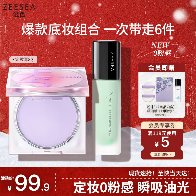ZEESEA滋色定妆膏粉饼散粉控油防水汗姿色中样隔离霜紫色+定妆膏 新年礼