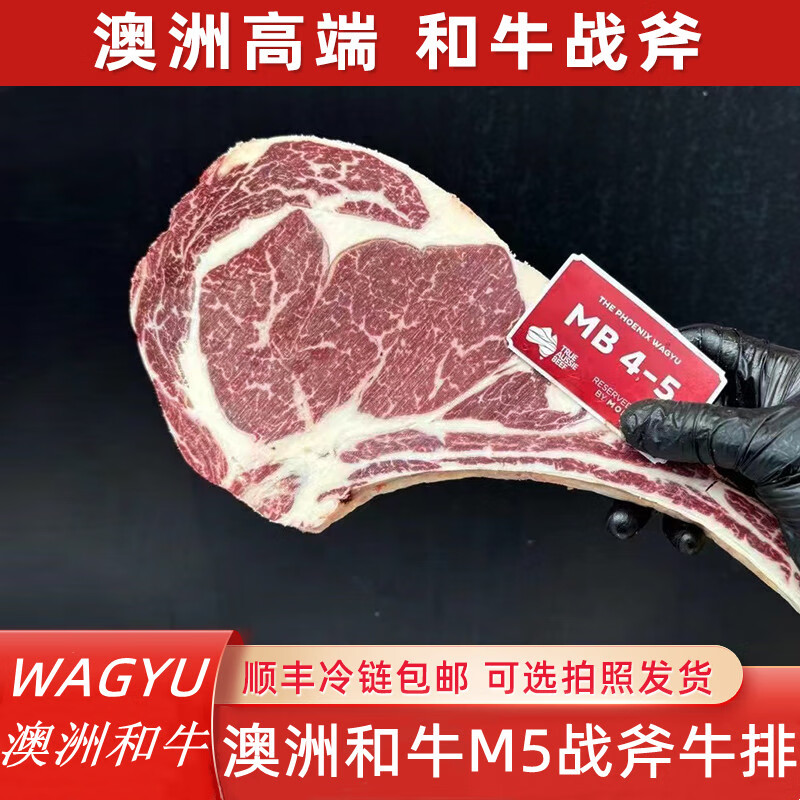 肉鲜厨师 澳洲和牛M5战斧原切牛排 净重2斤 雪花谷饲牛肉带骨眼肉