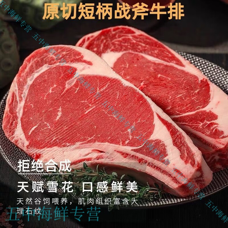 欧朗沃战斧牛排原切M5和牛雪花牛排进口谷饲200天短柄战斧牛排 厚切战斧 厚切短柄战斧 1000g