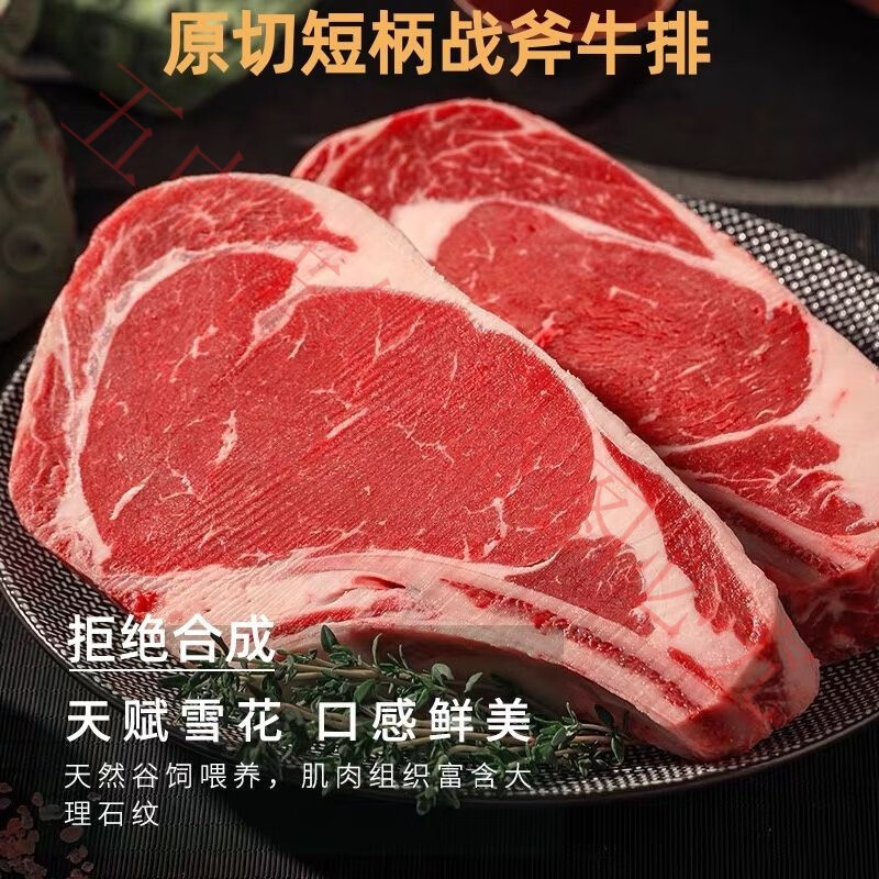 一号私厨原切长柄战斧牛排新鲜厚切安格斯谷饲牛排可煎可烤纹理清晰