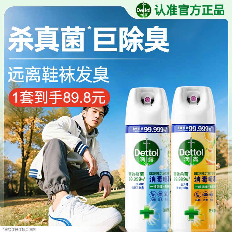 滴露消毒喷雾454ml*2鞋子除臭杀菌喷雾马桶消毒铃兰+柑橘春节大扫除