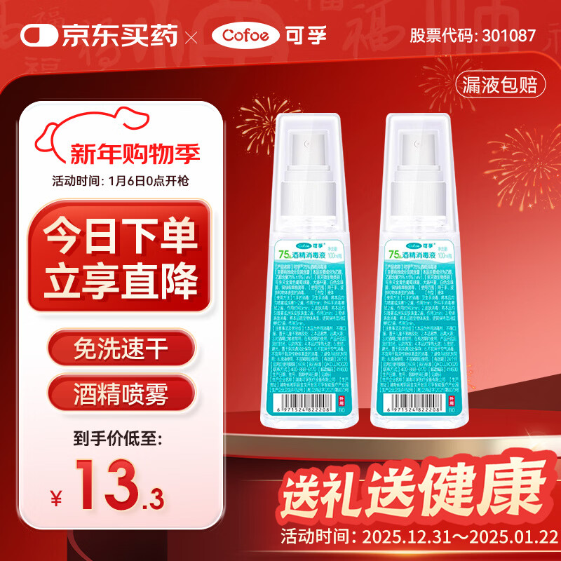 消毒液75%酒精喷雾便携式瓶装杀菌医用酒精清洁家用学生免洗喷剂 【100ml喷雾型】2瓶尝鲜装【极速发货】药房同款