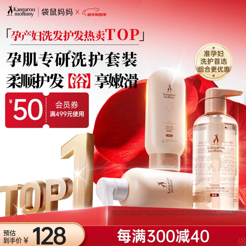 袋鼠妈妈准孕妇洗护套装洗发水沐浴露护发素宝妈3件套护肤品专用热门商品