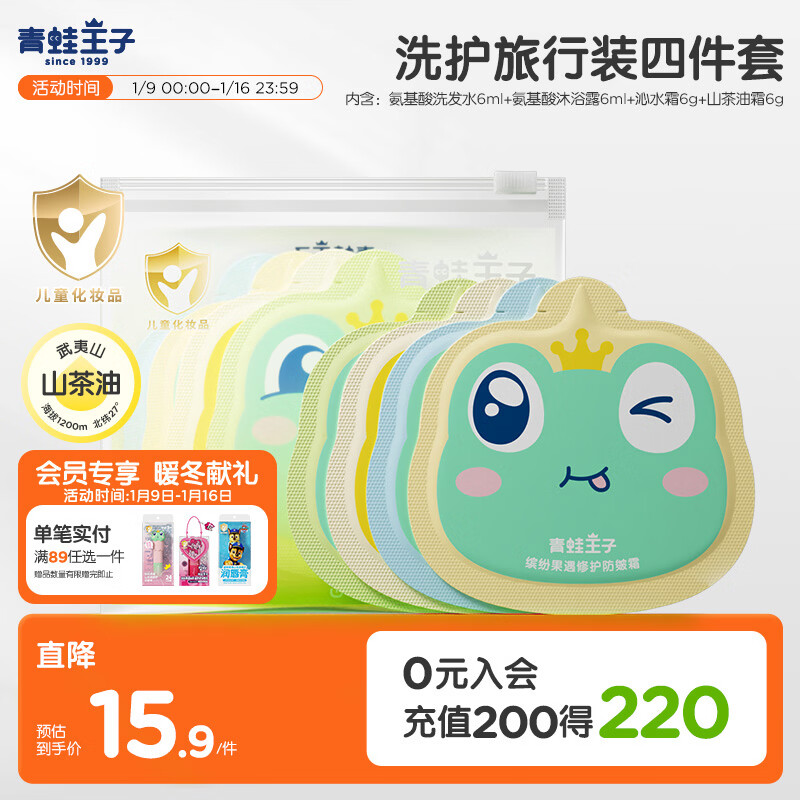 青蛙王子山茶油洗沐护肤4件套(洗发6ml+沐浴乳6ml+沁水霜6g+山茶油霜6g)