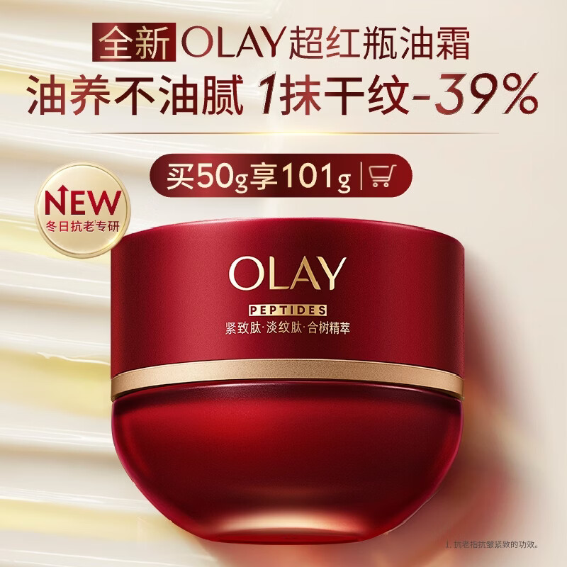 玉兰油(OLAY)全新超红瓶油霜精华油面霜抗皱紧致晚霜护肤品修护干皮新年礼物女