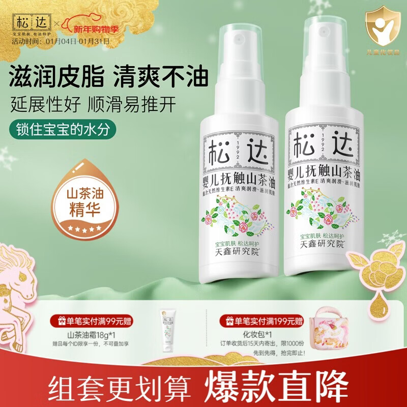 松达婴儿抚触油山茶油儿童润肤油按摩油护肤保湿秋冬季宝宝润肤油 【千人复购】抚触山茶油50ml*2