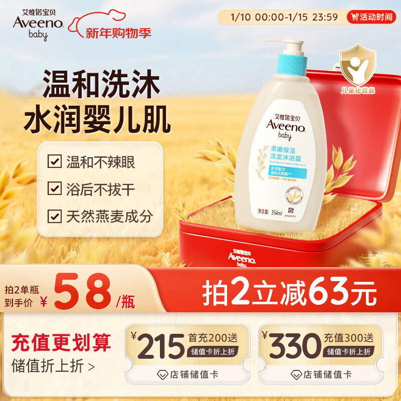 艾惟诺(Aveeno)艾维诺儿童洗发水沐浴露二合一婴儿洗沐二合一护肤0-6-12岁 354ml